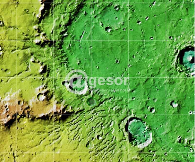 El cráter Cardona es el que aparece al centro de la fotografía.
