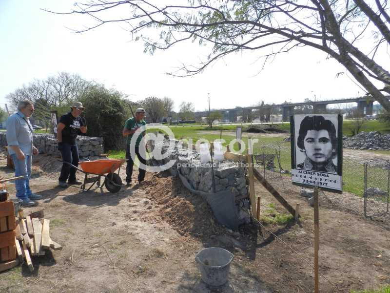 Entre quienes durante la mañana del domingo estaban destinando su esfuerzo a la construcción del Espacio Memoria que recordará a los diez detenidos desaparecidos de Soriano, estaba el Prof. Ramón Hernández, integrante de la Comisión Memoria, Justicia y contra la Impunidad, acompañado entre otros por Jacqueline Gurruchaga y su esposo (el cebador oficial de mates dijo Jacqueline), María Ingold, Decler García, entre otros.