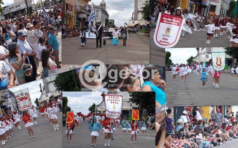 El desfile fue abierto por la Banda Mercedes luego fue el turno de la de Villa Soriano, en tercer término lo hizo la de Cardona, seguidamente pasó haciendo sus evoluciones "La Chispita" de Sacachispas y cerró la Banda Show Marchante de Dolores.