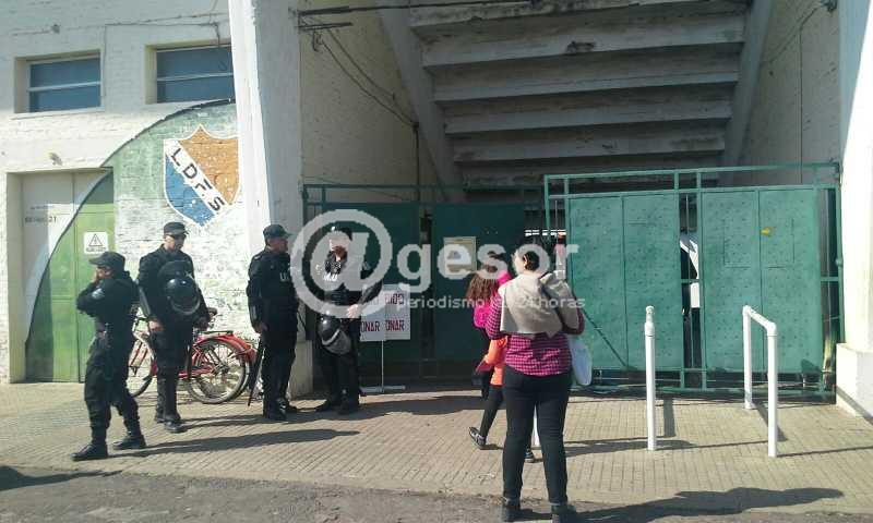 A su vez, en la entrada principal del Estadio Koster se puede apreciar un gran dispositivo de seguridad.