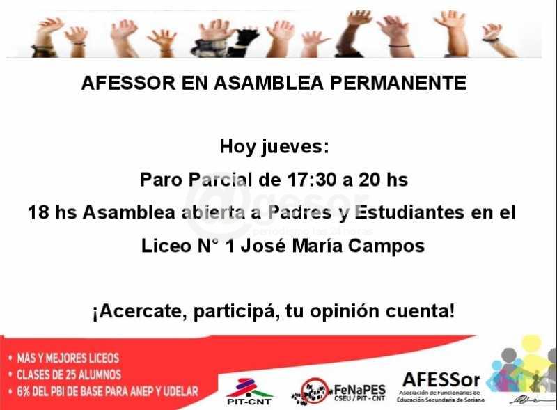 18 horas Asamblea abierta a padre y estudiantes en el Liceo N° 1 José María Campos