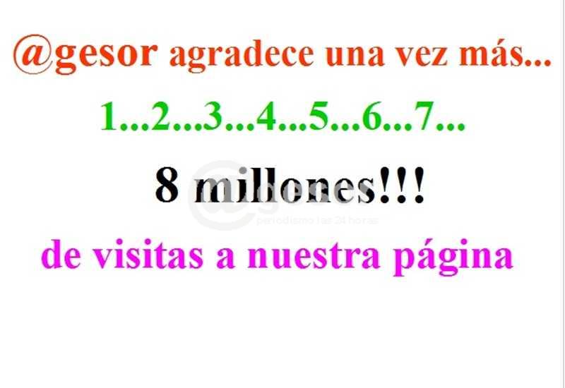 Al haber superado l0s 8 millones!!! de visitas hacemos llegar a todos nuestro fraternal agradecimiento, ¡salud!