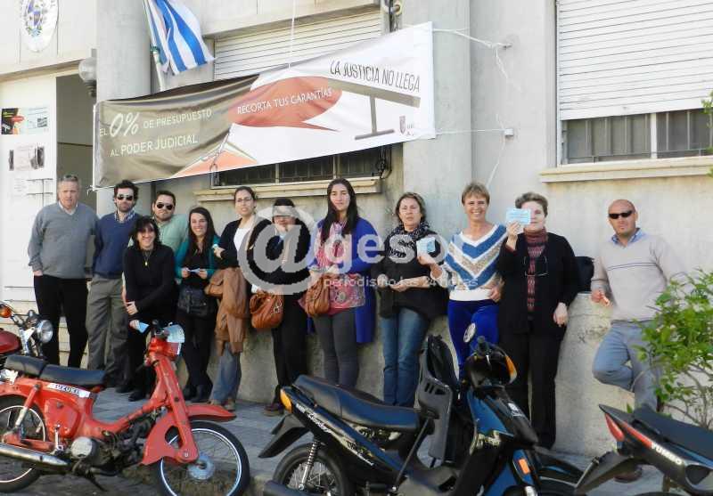 El gremio de funcionarios del Poder Judicial realizó un paro general sin guardia gremial este jueves. En Montevideo con concentracion en plaza Libertad y el corte de avenida 18 de Julio, mientras que en el Interior hubo movilizaciones, en el caso de Mercedes se concentraron en el frente del edificio donde funcionan los Juzgados de Primera Instancia y Departamental de Paz, así como la Defensoría de Oficio y el novel Centro de Mediaciones en 18 de Julio entre Rodó y Sánchez.