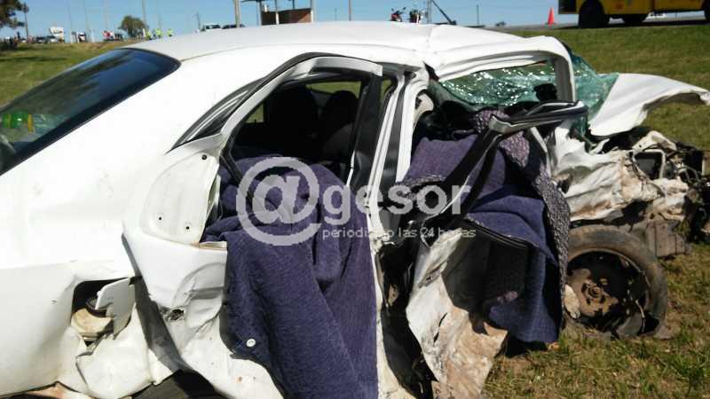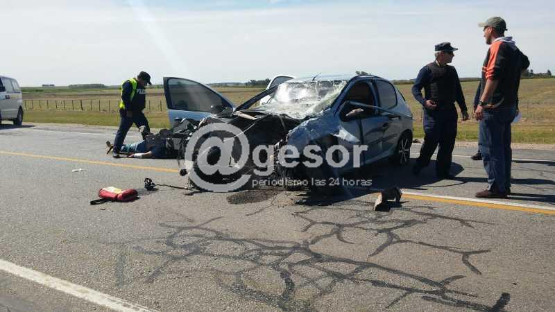 El siniestro carretero se produjo en Ruta 2 a la altura del kilómetro 243, a unos 200 metros antes de llegar a Palmitas (de Norte a Sur). En estos momentos personal policial, de bomberos, caminera y asistencia médica trabajan en el lugar. Por el momento no se ha podido determinar la causa que provocó el choque frontal entre los dos vehículos, que fue de tal magnitud que a uno de ellos, el automóvil Peugeot 206, perdió el motor quedando a unos 20 metros del impacto.