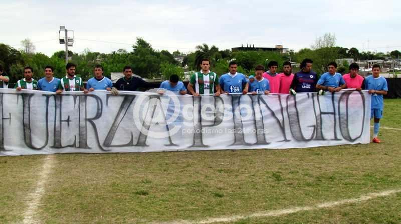 Futbolistas tanto de Olímpico como Racing en un gesto de solidaridad, previo al encuentro de este sábado, exhibieron una bandera con la leyenda Fuerza Pincho” en apoyo al joven defensa de Olímpico, Germán Cano, aquejado de una complicada situación de salud.