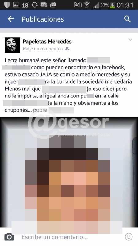 La cuenta de facebook "Papeletas Mercedes", creada, por su apariencia, por un usuario de la ciudad de Mercedes, nuevamente ha despertado indignación en la comunidad, dado que el objetivo que persigue dicha página es el de exponer a menores y personas mayores (quienes son escrachados públicamente con nombre, apellido y fotos), sobre actos que son relatados por el creador de la cuenta.