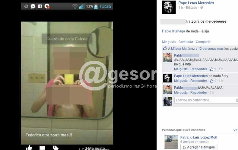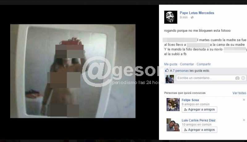 A través de la cuenta de facebook "Papeletas Mercedes" siguen apareciendo fotografías de adolescentes, pero en esta oportunidad las jovencitas aparecen desnudas mostrando su cuerpo para la cámara y luego estas imágenes son difundidas sin ningún tipo de problema como si fuera moneda corriente el acto de pornografía que queda demostrado, un tema que sin lugar a dudas escapa a los mayores responsables de los adolescentes que quedan involucrados con estas lamentables acciones.
