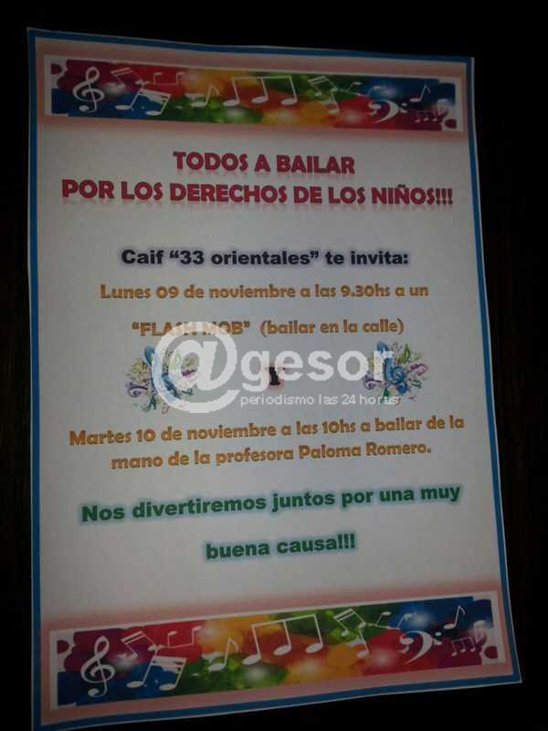 Todos a bailar por los derechos de los niños!!! Es la propuesta que lanza para este lunes 9 y martes 10 de noviembre el CAIF "33 Orientales", como parte de una serie de actividades que la institución viene cumpliendo durante el mes de noviembre.