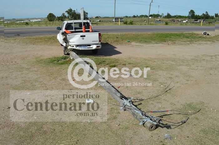 Según informó el Comisario de la mencionada repartición, la camioneta circulaba por Ruta 2, cuando su conductor esquivó un perro terminando en la lugar de referencia. Algunos vecinos se comunicaron con Centenario, según dicen testigos del hecho, para informar que el vehículo se encontraba en dicho estacionamiento y colisionó contra la columna al retirarse, haciendo circular además videos en las redes sociales. Tal lo expresado anteriormente, el hecho viene siendo investigado, esperando además las autoridades, el informe de Policía Técnica que trabajó en el lugar. En la imagen se puede apreciar la camioneta y la columna derribada", dice el reporte de periodicocentenario.com.uy.