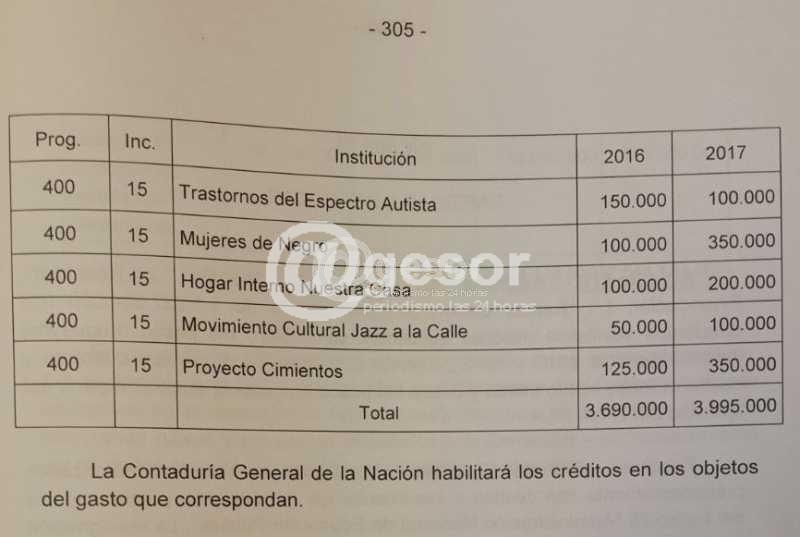 Que frecuentemente realiza aportes a distintos emprendimientos de alto contenido social y cultural también realizaría su aporte y eventualmente incrementaría los montos comprometidos anteriormente.