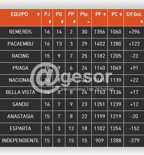 El único puntero del certamen es Remeros, tras su victoria de este martes ante Bella Vista de Dolores.
