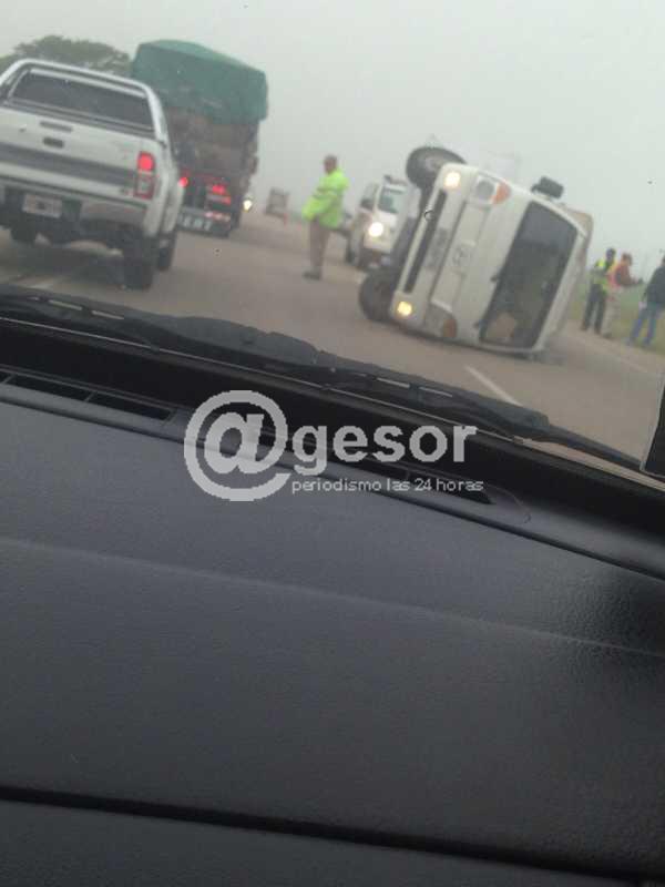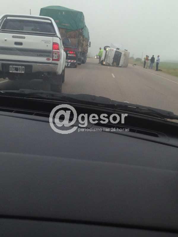 En inmediaciones del Peaje ubicado sobre ruta 2, rumbo a Fray Bentos, se registró un accidente de tránsito espectacular protagonizado por un vehículo tipo utilitario que terminó volcando. El hecho se suscitó en la mañana de este jueves, y varios lectores de @gesor enviaron a su fotografía a la producción de nuestra Agencia de Noticias.