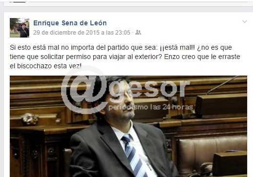 Enrique Sena de León: “Si esto está mal no importa del partido que sea: ¡¡está mal!! ¿no es que tiene que solicitar permiso para viajar al exterior? Enzo creo que le erraste el biscochazo esta vez!”