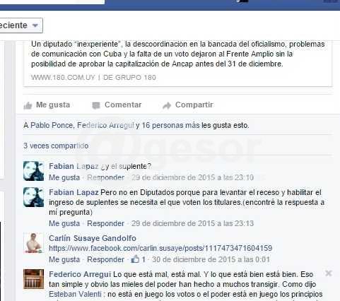 Como informáramos este tema tuvo como centro de atención al diputado socialista Enzo Malán cuyo voto faltaba para levantar el receso de la Cámara de Diputados. Algo que pudo concretarse en el primer día del año, en una medida inusual para el Uruguay ya que habitualmente el verano determina una paralización casi total de la actividad parlamentaria.