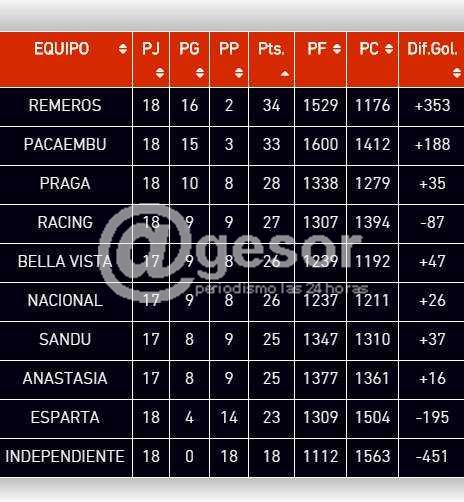 Al haber perdido con Remeros este miércoles (como @gesor informa por separado), Racing tiene 27 puntos y depende del triunfo de Nacional y de Sandú Chico, ya que tiene ventaja con Bella Vista y con Sandú Chico ( le ganó a los dos las dos veces que jugaron). Con Nacional y con Anastasia de Fray Bentos tiene desventaja en tantos.