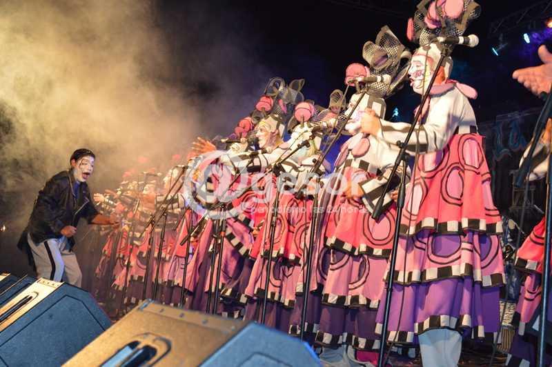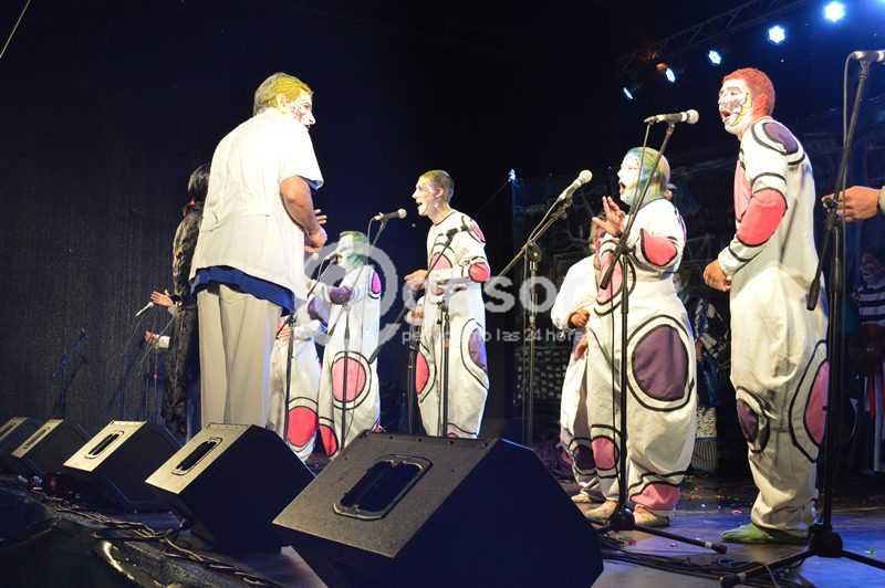 En su nueva presentación la murga subió al escenario de Manzana 20 , con una presentación llena de fuerza precedida de la puesta en escena de Joaquín Montero, que se luce con su potente voz como solista del conjunto de carnaval.