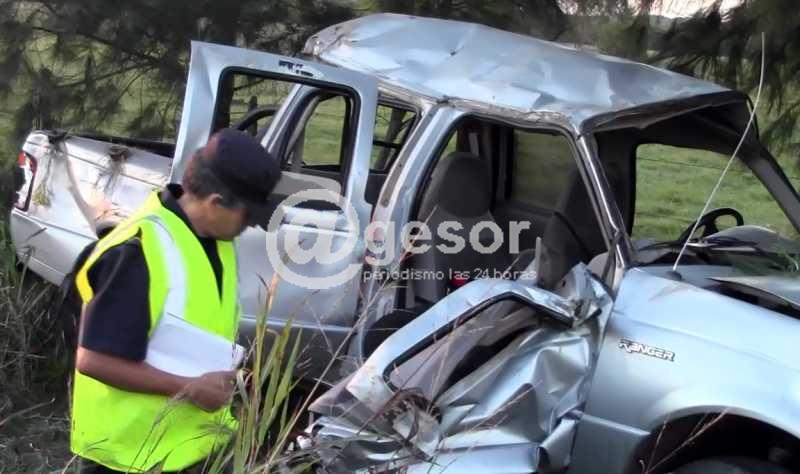 Fue atendido en la tarde anterior por Seccional Tercera en Ruta 14 Km. 8, donde se establece que en circunstancias que la camioneta FORD RANGER, matrícula JFB 5918, circulaba por dicha ruta al oeste, ocupada por los masculinos A.S.I.O., de 60 años, como chofer y J.M.G.C, de 71 años y las femeninas S.F.L., de 55 años y S.I.L., de 57 años, al intentar rebasar otra camioneta que circulaba en igual sentido, su conductor pierde el dominio del rodado, saliendo fuera de la Ruta sobre banquina derecha, volcando en su recorrido. Asistidos los involucrados en el accidente se les certificó a S.I.L., Politraumatismos de carácter leve; a S.F.L. Politraumatizada grave, fractura de 1er vértebra cervical, múltiple fractura costal; a J.M.G.C, Politraumatismos sin pérdida de conocimiento y a Á.S.I.O: politraumatizado moderado, fractura lumbar. Fue ubicado en el lugar el otro vehículo involucrado en el hecho, efectuándosele espirometría al conductor con resultado 0°. Se dio intervención a Policía Científica, Tránsito Municipal, Policía de Tránsito y personal de Bomberos local, tramitándose a la Justicia competente.