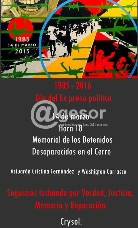 Este año nuestra celebración consistirá en un breve acto político alusivo a la fecha y a nuestras banderas históricas de Verdad, Memoria, Justicia y Reparación”; concluye el comunicado. Convocando a todas y a todos los ex presos políticos, a los familiares, amigos “y ciudadanía en general a participar en dicha actividad, reafirmando el compromiso de Nunca más terrorismo de Estado”.