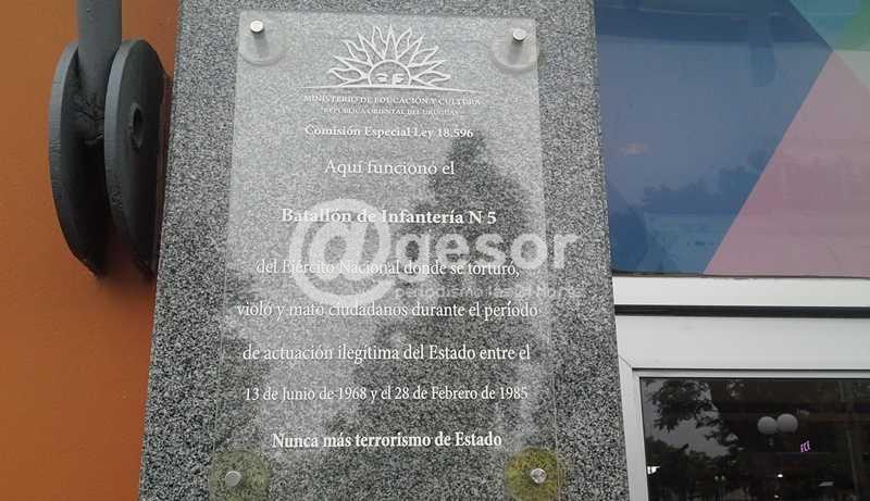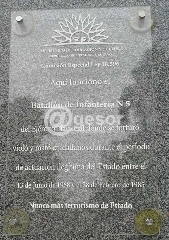 Como se recordará en diciembre pasado cumpliendo con lo que establece la Ley N° 18586, se colocó una placa recordando que en el edificio donde funcionó el ex Cuartel “Gral. Luna”, sede del Batallón de Infantería N° 5 fue uno de los centros donde se torturó en la pasada dictadura cívico-militar. Dicha placa expresa: “Aquí funcionó el Batallón de Infantería N 5 del Ejército Nacional donde se torturó, violó y mató a ciudadanos durante el período de actuación ilegítima del Estado entre el 13 de Junio de 1968 y el 28 de Febrero de 1985. Nunca más terrorismo de Estado”.