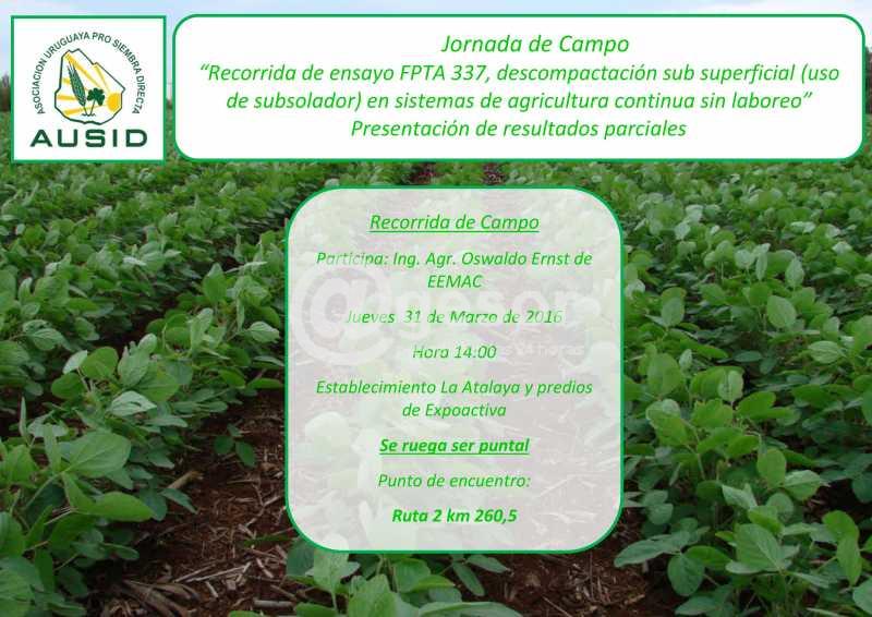 Jornada de campo organizada por AUSID se realiza este jueves 31 de marzo con recorrida de campo desde las 14.00 horas en establecimiento La Atalaya y predios de Expoactiva.