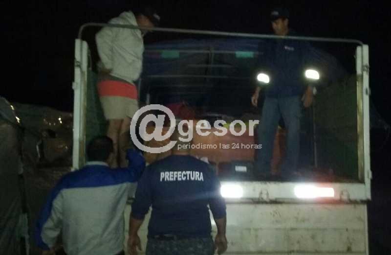A las 20.30 horas personal de Prefectura del puerto de Mercedes realiza tareas de evacuación de familia que habita una vivienda precaria hecha con descartes en la zona de club Chacarita en paraje Pense, tratándose de una pareja con cinco hijos menores de edad que son trasladados a finca particular que le cedieron en inmediaciones de Escuela 25.
