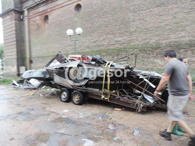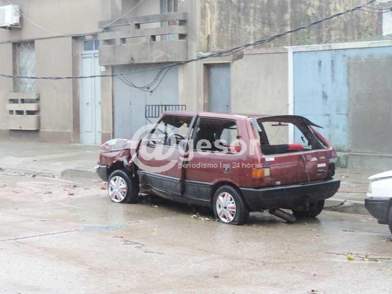 Ha pasado una semana del tornado de Dolores y siguen apareciendo secuelas por toda la ciudad de los daños que provocó. Recorriendo sus calles pueden verse las ruinas que el viento causó en numerosas construcciones, aunque algunas de ellas ya debieron ser demolidas, ante el riesgo que presentaban, de desmoronarse, como el caso del edificio de la Iglesia Evangélica ubicada sobre Calle Varela. El número de víctimas fatales y de heridos (más de 200) revela la magnitud de la catástrofe. Pero más allá del penoso saldo de víctimas humanas y del deterioro que puede observarse en todo tipo de edificaciones, hay otros destrozos que demandarán gastos difíciles de precisar. En ese sentido, las roturas causadas en muchos vehículos que estaban estacionados en la vía pública al momento de producirse el fenómeno evidencian también el grado de destrucción, como muestran algunas de las imágenes registradas por el equipo periodístico de @gesor durante la cobertura que venimos haciendo desde que ocurriera el desastre natural. La potencia eólica y la voladura de chapas, postes y ladrillos afectó varios automóviles de enorme valor, carros de comida y maquinaria agrícola, volteándolos en algunos casos y causándoles todo tipo de abolladuras.