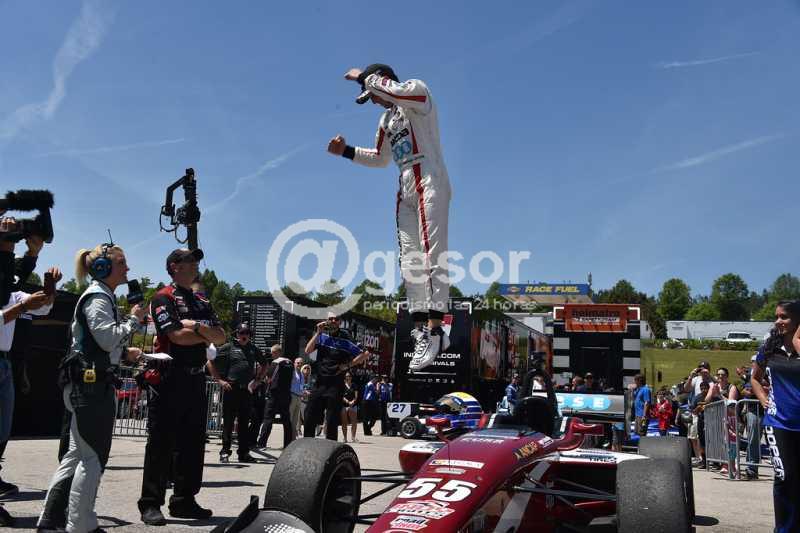 Partiendo desde la tercera posición, el piloto compatriota salió decidido a buscar la victoria. Primero superó a Dean Stoneman (Andretti) y quedó segundo para luego realizar una maniobra riesgosa (pero efectiva) de adelantamiento ante Ed Jones (Carlin) que resistió todo lo que pudo pero la batalla la tenía ganada el coloniense al colarse por la parte interior de la curva siete.