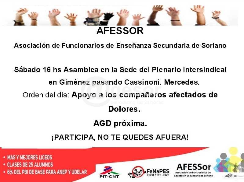 Sábado 16.00 horas asamblea en la sede del Plenario Intersindical en Giménez pasando Cassinoni, Mercedes