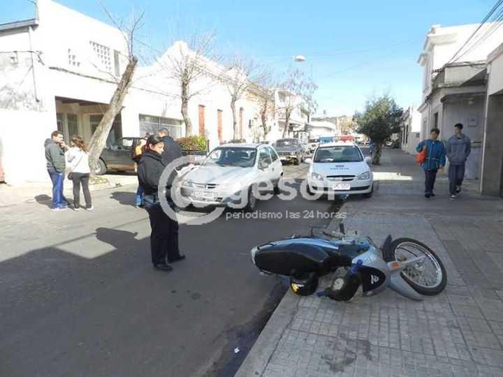 Fractura de cadera izquierda sufrió un motociclista al chocar contra un automóvil. El siniestro se produjo en la intersección de calle Ferreira Aldunate y 18 de Julio de Mercedes. Por 18 de julio al Norte circulaba el auto Volkswagen matrícula LGA 3562, conducido por RFGA, uruguaya de 34 años, domiciliada en Nueva Palmira, y por Ferreira Aldunate al Oeste lo hacía la moto Vital, matrícula KNA 768, guiada por EVIA, soltero, de 26 años de edad.