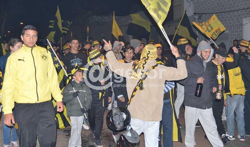 Como sucede en el resto del país, en Soriano los hinchas aurinegros están celebrando esta nueva conquista de su equipo en el fútbol profesional. En Mercedes se cumple una caravana que partió de la llamada “Esquina Manya” (Ferrería y Artigas).