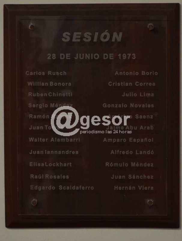La sala de sesiones de la Junta Departamental pasó a llamarse Carlos Rusch, edil que en 1973 presidiera aquella histórica sesión. Pero además en un sector destacado de la sala se instaló una placa que recuerda el nombre de los ediles que participaron de aquella sesión.