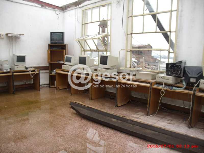 La voladura del techo de la tercera planta está afectando a las demás instalaciones (primera y segunda planta) por humedades y continuas filtraciones de agua. Los equipos de la sala de informática se perdieron, las bibliotecas, vitrinas y todo el mobiliario está pudriéndose, entre otras tantas pérdidas.