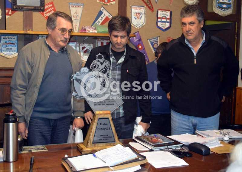 En el transcurso de la sesión ordinaria de la Liga Departamental de Fútbol de Soriano, los señores Sebastián y Luis Invernizzi principales del empresa Grupo 3", presentaron el hermoso trofeo.