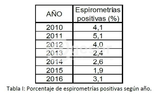 En este período se realizaron 6.569 espirometrías en todo el territorio nacional, resultando positivas el 3,1%.