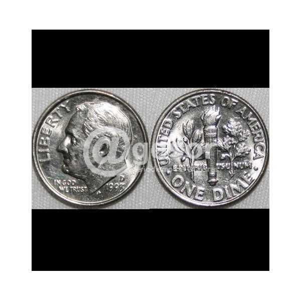 De un lado tiene una figura humana y la leyenda Liberty D 1993 e in god we trust (en Dios confiamos) y del otro, bastante deteriorada figura y letras pero alcanza a verse United States of America, one dime y otra leyenda.