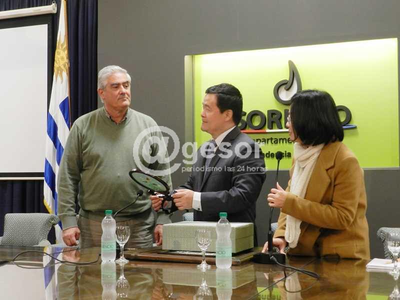 En el salón de actos "Eduardo Víctor Haedo" de la Intendencia de Soriano, el Intendente Agustín Bascou Gil, recibió al Embajador de la República Popular de China, Dong Xiaojun, con quien intercambió conceptos sobre políticas de relacionamiento entre ambos países y la posibilidad de incluir en ello a Soriano.