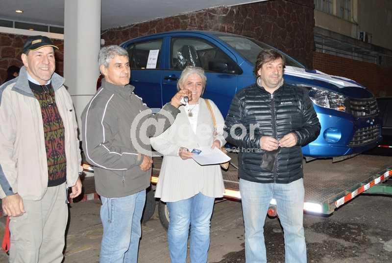El Club Remeros Mercedes procedió a entregar este lunes el automóvil Suzuki Celerio 0 Km sorteado recientemente. Acompañado por otros integrantes de la junta directiva de la institución de la costa mercedaria (el secretario Luis Moreira y Walter Esquivel), y en presencia también de la escribana Matilde Grisi, el presidente del club, Horacio Cabrera, entregó este lunes la llave del vehículo a Daniel Tomei, quien resultara favorecido con el número 951, al realizarse el sorteo correspondiente, el pasado 24 de agosto, en el marco del baile de la Noche de la Nostalgia.
