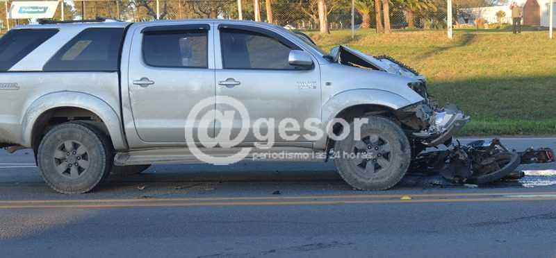 El rodado menor, impactó de manera frontal con la camioneta, siendo arrastrado unos 80 metros aproximadamente.