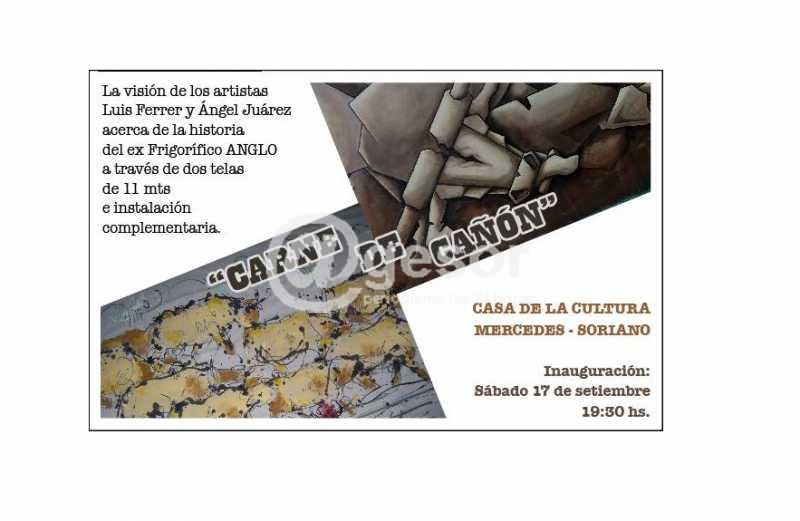 Este sábado en Casa de la Cultura se inaugurará la muestra plástica “Carne de cañón” de los artistas coterráneos Ángel Juárez y Luis Ferrer. La muestra tiene como tema central el ex Frigorífico Anglo de Fray Bentos, abordado desde el terreno de las artes plásticas, con obras de importantes dimensiones.