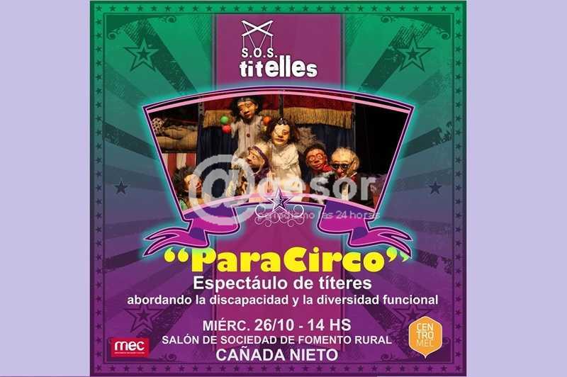 Desde Barcelona y a través de Centros Mec, llega a Cañada Nieto S.O.S titelles. Presentarán un espectáculo para todo público, ParaCirco. Será con entrada gratuita, comenzando a las 14 horas.
