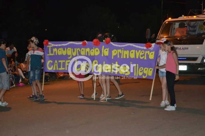 Del viernes al domingo pasado Palmitas celebró la llegada de la primavera con una verdadera fiesta popular. Numeroso público concurrió a la localidad a celebrar la fiesta de la primavera, donde con un toque diferente la familia palmitense salió a la calle a divertirse, no solamente como espectadores sino disfrazados, tal como lo muestran las fotografías.