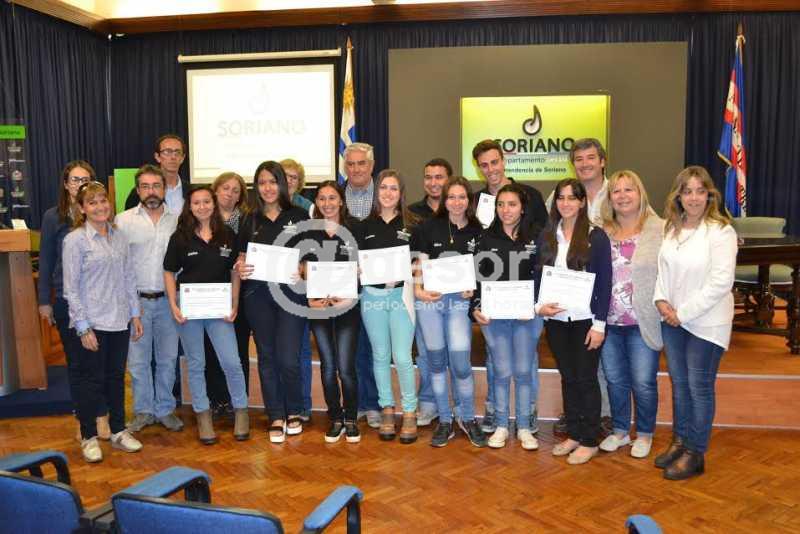 El intendente Agustín Bascou, hizo entrega este viernes de los diplomas a los nueve jóvenes que completaron el curso de Gestor en servicios que llevó adelante la Intendencia de Soriano.