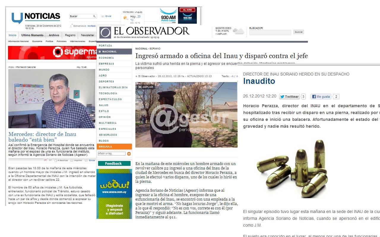 Inmediata repercusión en los medios de prensa nacionales tuvo la noticia de la agresión al Jefe Departamental de Inau, ocurrida en la mañana de hoy. La primicia dada por @gesor repercutió de inmediato en los medios de prensa nacionales, en virtud de lo insólito del hecho que conmocionó a la ciudad de Mercedes.