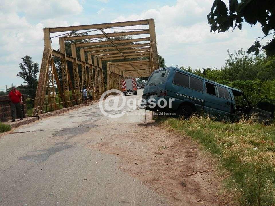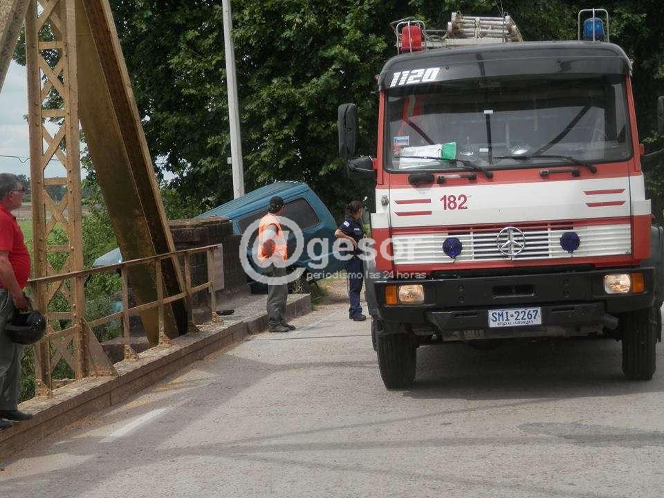 El hecho se produjo cerca de las 14 horas del domingo. La camioneta Hyundai Matricula B 127-381 de Maldonado, que era conducida por Matías López, oriundo de Mercedes circulaba rumbo a Dolores cuando por causas que se intentan determinar,impactó contra la cabecera del puente quedando inclinada en la pendiente y a punto de caerse. Fue necesaria la presencia de personal del cuerpo de bomberos de Dolores para asegurar el vehículo y rescatar a su conductor que se encontraba atrapado entre los hierros.