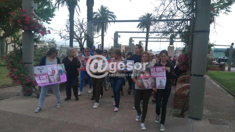La fotografía es precisamente de la marcha por la muerte de Paola, la mujer que perdió su vida en esta instancia en Dolores.
