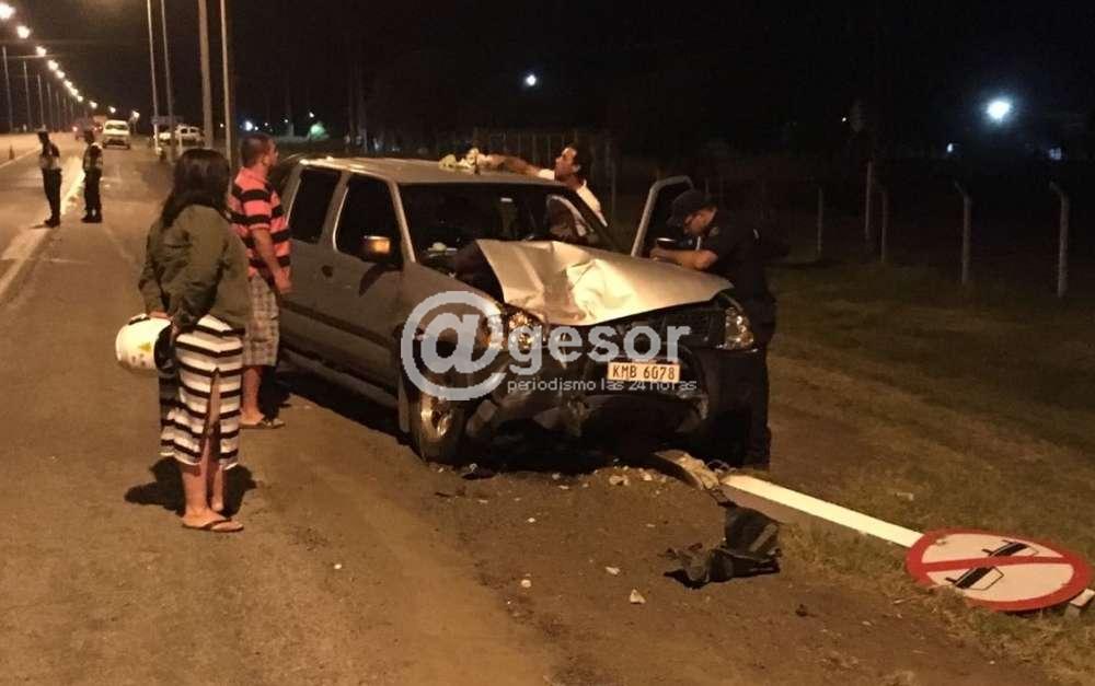 Próximo a las 23.00 horas del domingo  ocurrió siniestro de tránsito en la denominada ruta puente - puerto en ejidos de Fray Bentos donde colisionaron dos vehículos. Por un lado el automóvil matrícula JFB 6791, de la capital rionegrense y por el otro la camioneta Nissan Frontier KMB 6078 de Mercedes.
