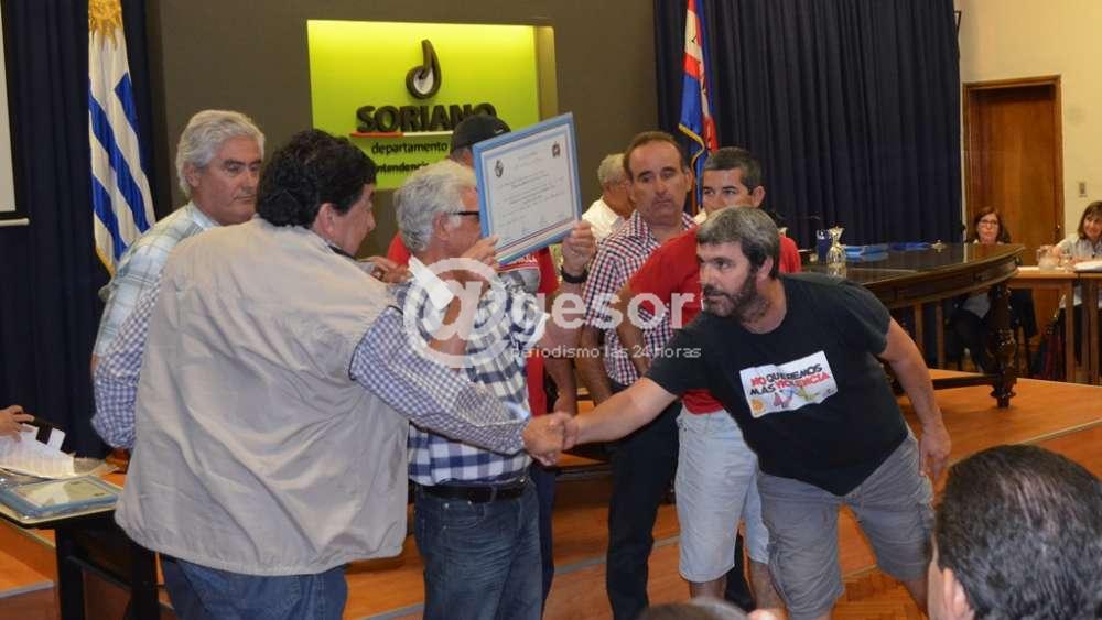 En una sencilla Sesión Extraordinaria, que luego pasó a Régimen de Comisión General, Junta Departamental de Soriano procedió a la entrega del Diploma “Por la Causa de Soriano” presidido por el presidente de la corporación , Sr. Ricardo Acosta. La instancia se desarrolló en el salón de Actos Eduardo Víctor Haedo de la Intendencia de Soriano, contando con la presencia, del Sr Senador Guillermo Besozzi, del Intendente de Soriano Sr. Agustín Bascou, el Secretario General, Dr. Germán Cavallero, Directores de la Intendencia. Además de los homenajeados y sus familiares.