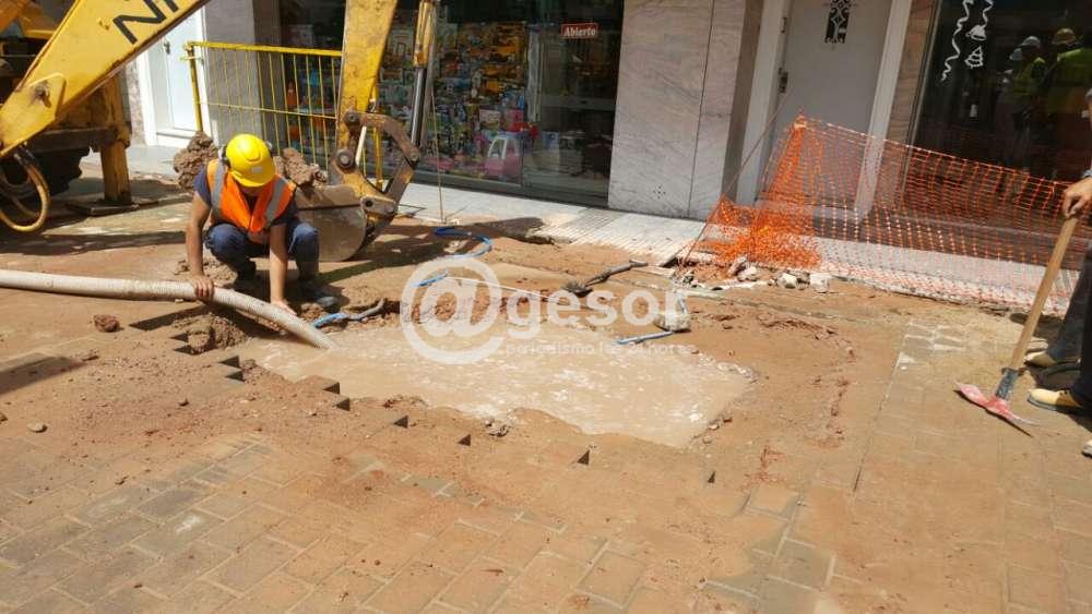 Debido a una rotura en la línea madre de abastecimiento de agua potable de OSE en calle Colón entre Ferreira Aldunate y Rodó, las obras de la semipeatonal se debieron interrumpir en ese sector.