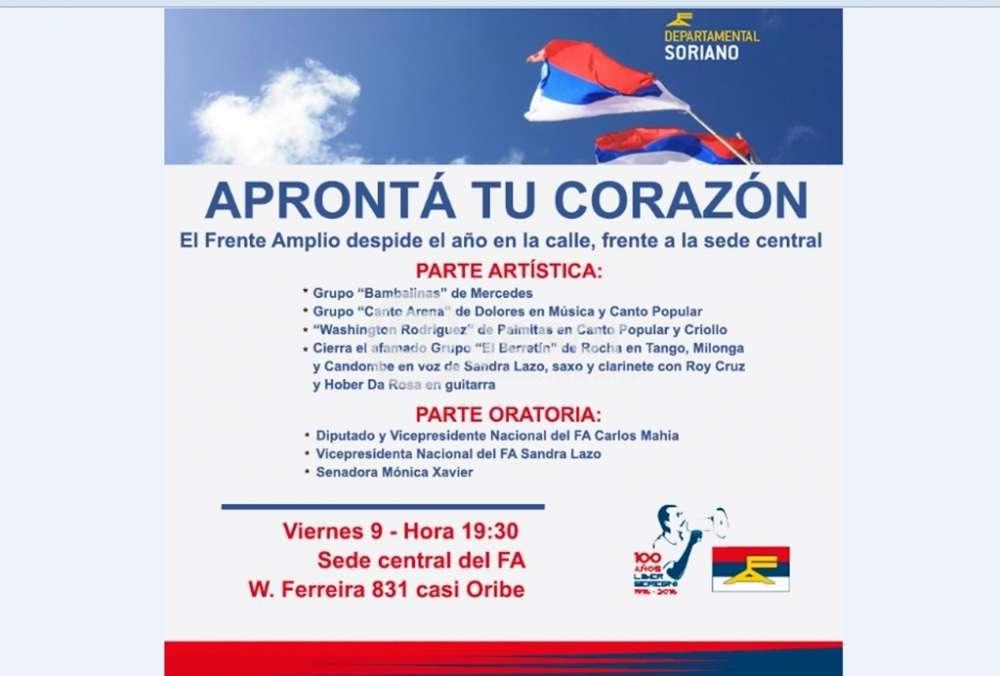 Aprontá tu corazón: El Frente Amplio despide el año en la calle, frente a la sede central