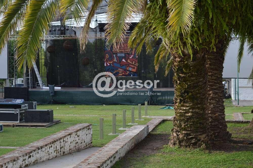 Funcionarios de la Intendencia de Soriano terminaron de montar el escenario y acondicionar el predio de la Manzana 20 de Mercedes donde desde este sábado y hasta el domingo 15 de enero se estará realizando el 10° Encuentro Internacional de Músicos de Jazz a la calle.